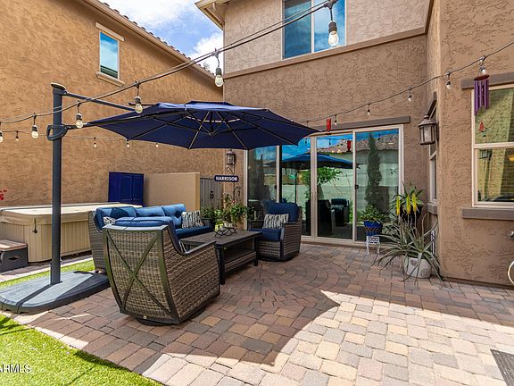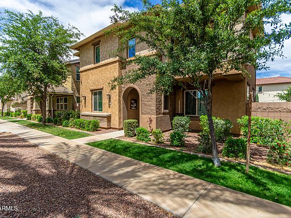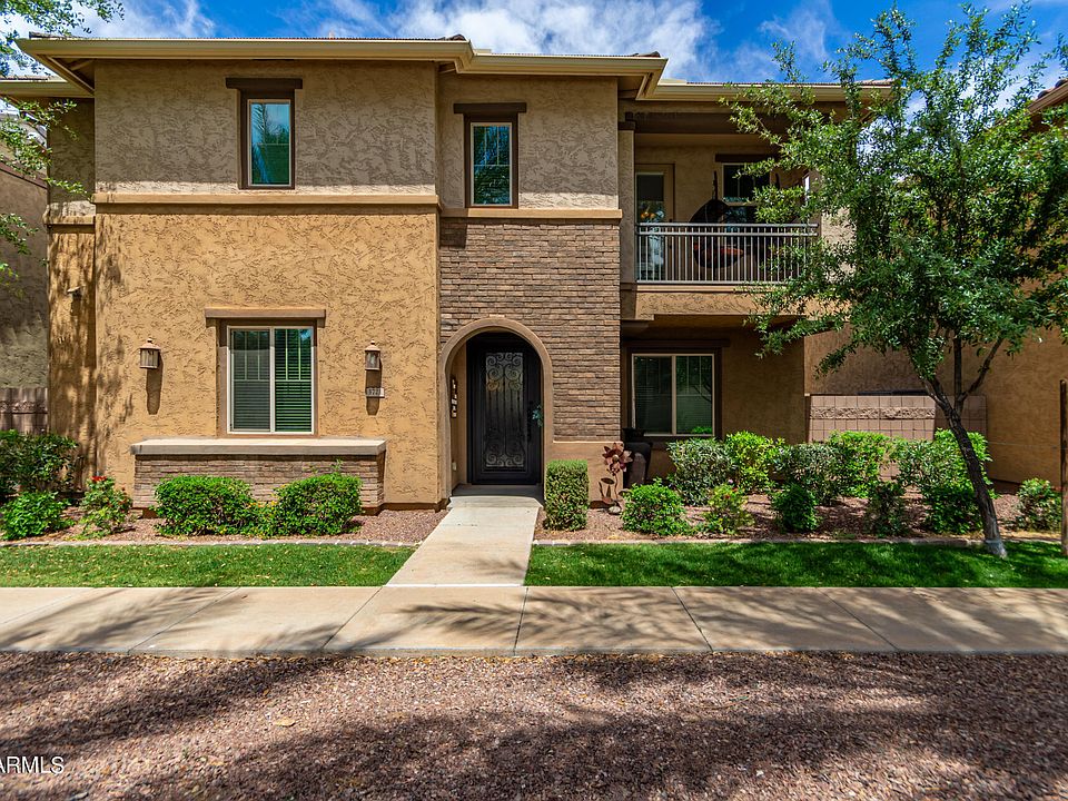 Nestled in a superior location that offers a blend of elegance & comfort, this move-in ready, two-level home boasts exquisite curb appeal w/ charming stone accents & a striking First Impressions Iron security door. Inside, discover 3 beds & 3 baths plus a den, perfectly complemented by Brazilian Ebony flooring & thoughtful upgrades throughout. The dining room seamlessly integrates w/ the kitchen, featuring ample counter space, storage, a large island, granite counters & stainless steel appliances. The generously sized master bedroom is a serene retreat, complete w/ a walk-in closet, full master bath, separate shower/tub, private toilet room & double sinks. Enjoy direct access to the balcony overlooking the largest of three pools, perfect for relaxing evenings. Step outside to the private yard featuring a covered patio, pavers & an above-ground spa, ideal for outdoor entertaining & relaxation. Conveniently located near restaurants, shopping centers, highway access, & healthcare providers, this home offers easy access to everyday amenities & leisure activities. Don't miss the opportunity to experience luxurious living in Gilbert!