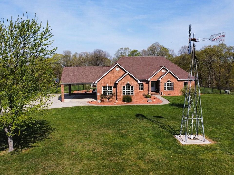Private Rolling country estate with half acre pond and great hunting, Acres of warm grasses to hold wildlife of deer turkey and pheasant. The all brick home features hardwood floors, granite counters security cameras, in ground pool with pool house. The lower level could be separate living quarters with Kitchenette, laundry , family room, workout area and more, The 3000 sq ft barn is finished with car lift, heat sources, 2 offices and bath, and 1000 sq ft lean to, second barn is 1800 sq ft with 1300 sq ft lean to. The property is only 45 minutes to Downtown Columbus and Johnstown area, 20 minutes to Buckeye Lake and a mile from Rushcreek Lake.
