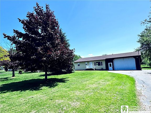 Welcome to this inviting 2-bedroom ranch-style home featuring a modern kitchen with solid surface countertops and a cozy breakfast room that opens through sliding glass doors to the backyard. The full bathroom boasts a luxurious soaking tub and a beautifully tiled shower. Enjoy the convenience of an oversized two-car attached garage. This property sits on a deep lot just outside the city limits of Dunkirk, offering affordable taxes—no city tax!