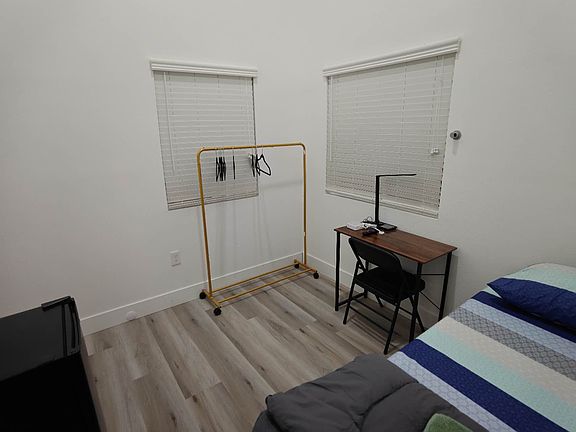 - New Construction building - WiFi (Spectrum 1000) - Twin size bed - TV, Mini fridge, Fan, Table, Chair, Lamp - The two shared bathrooms are shared among six roommates. - Central AC and Heater(thermostat is preset) - Free in-unit washer and dryer available. - Free street parking is available, while designated spots on the property are available for an additional fee. The lease is on a minimum three-month basis, converting to a month-to-month tenancy thereafter.