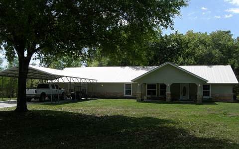 Quiet surroundings yet close to 27. Beautiful, almost 10 acre equestrian property with office and storage building at entrance, 3 separate pastures, 4 stall horse barn with a possibility of 8 stalls + tack room and 2 trailer parking. Package includes income producing single wide mobile home and 50 x 25 motor home shelter. The rear of property has a lovely 4 bedroom, 2 bath home with a metal roof, fireplace, laminate wood flooring, open kitchen with granite counter tops, large bonus room and tons of storage. Enjoy the evenings on the wood deck out back. Large 64 x 71 pole barn with metal roof, plumbing and electricity. Windmill generates 1 of 3 wells on property, chlorine injected water filtration system. Beautiful large oakes, pines and more. Call today!