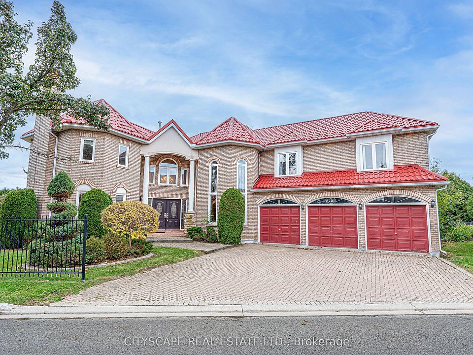 Rarely offered. 3-car garage detached home perfectly situated on a premium corner lot on the cul-de-sac in the highly sought-after Trelawny Estates community. Welcome to an entertainer's delight with whopping over 6500 sq ft. of living space including a fully finished basement with a separate in-law suite. The main level features hardwood floors throughout, a formal living room with coffered ceiling, marble electric fireplace, and large sun-filled windows, a formal dining room with nearly 17ft soaring ceiling, custom chandelier, floor-to-ceiling windows, double French doors, and direct access to the kitchen. The spacious family room offers a marble-surround fireplace, crown moulding, and four large windows overlooking garden. The private main-floor office is ideal for working from home and features double French doors, crown moulding, and two large windows. A stylish 2-piece powder room completes the main level. The gourmet eat-in kitchen is a chef's dream, featuring stainless steel appliances, marble countertops, a large centre island, custom cabinetry with pullouts, w/w pantry, 24"x24" porcelain tiles, and a bright breakfast area with an extended bar and walkout to the garden. The laundry room provides direct access to the deck and garden, a large closet, and oversized washer/dryer space. Upstairs, the primary suite offers hardwood floors, two walk-in closets, and a luxurious spa-like 6-piece ensuite, while three additional bedrooms each feature hardwood floors, double closets, and access to both a Jack & Jill 4-piece and a 5-piece bathroom. The finished basement includes a separate entrance from the garage and exterior, a full kitchen, living/recreation area, game room, bedroom, and 3-piece bath - perfect for extended family or guests with future rental potential. Outside, enjoy a beautifully landscaped private backyard with large tiered deck, mature trees, and lush gardens providing the ideal outdoor retreat while completing exterior with lifetime metal roof.