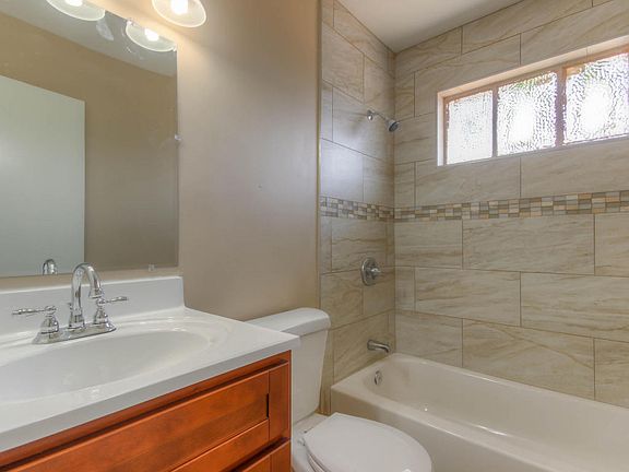 Across from school, Gated front yard, RV gate, Fresh paint, Remodeled bath and kitchen, one bedroom split, huge yard, shingle roof.