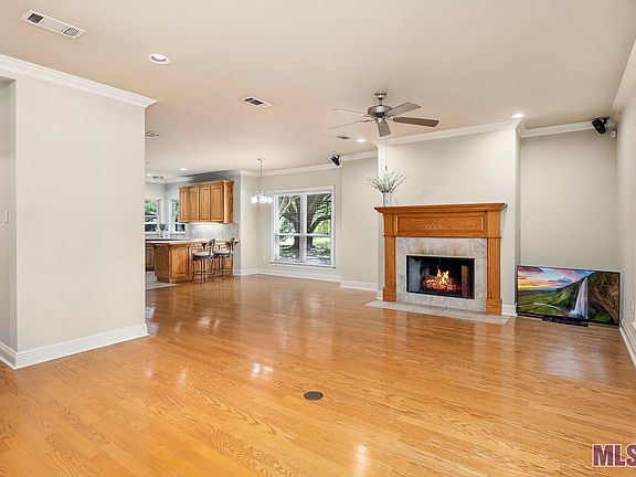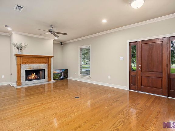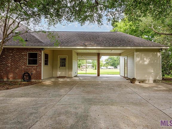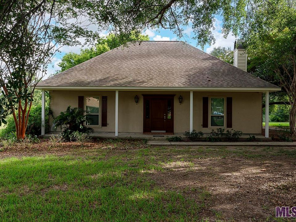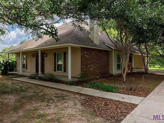 This well-appointed 3 bedroom, 2 bathroom residence features an office and is surrounded by numerous picturesque trees on a spacious half-acre lot conveniently situated just off Hwy 73, mere minutes away from I-10. The living area boasts elegant wood flooring and a central fireplace suitable for wood burning or gas logs. The gourmet kitchen is equipped with a breakfast bar, corner sink, a 5-burner gas stove with a double oven, and the refrigerator is included. Bedrooms 2 and 3 are generously sized, while the Primary suite offers his/her walk-in closets, an oversized jetted tub, and a separate shower. Additionally, there is a detached storage building/workshop in the backyard, ideal for DIY enthusiasts. The expansive covered patio is perfect for hosting gatherings.