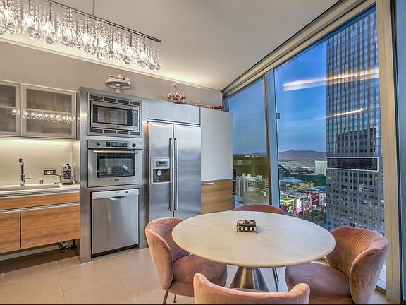 Perched in the iconic Veer Towers of CityCenter, this elevated condominium embodies modern sophistication and urban elegance. Featuring floor-to-ceiling glass walls, this fully furnished 2bd 2ba residence offers panoramic views of the Strip skyline and surrounding desert peaks. Inside, the open layout is complemented by sleek finishesstainless steel appliances, smart-home lighting, and designer touches throughout lend an aura of refined comfort. Residents at Veer enjoy five-star amenities: a dramatic rooftop infinity pool and spa with cabanas, a fully equipped fitness center with steam room and sauna, a stylish lounge with skyline vistas, as well as a billiards room and business center. Service is seamless with 24/7 concierge and valet parking. Situated in the heart of Las Vegas' most dynamic district, this residence provides effortless access to world-class dining, high-end shopping, and premier entertainmentall steps from your door.