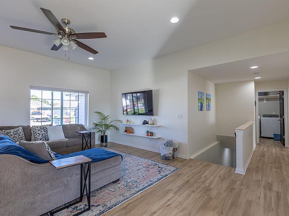 Welcome to this 2015 built ranch home offering 3 bedrooms on the main, 2 bathrooms, and a 2-car garage. The main floor highlights include a primary bedroom with private bathroom, main floor laundry, durable LVP flooring, dining area and an abundance of natural daylight. The basement features professionally installed carpet and a painted ceiling in the partially finished family room area, providing a great head start for finishing, with plumbing in place for a future bathroom and an egress window for a potential fourth bedroom. Situated on a flat lot the backyard has a nice patio and no neighbors behind. This home also comes complete with all kitchen appliances, washer, dryer, and water softener. Room sizes are approximate.