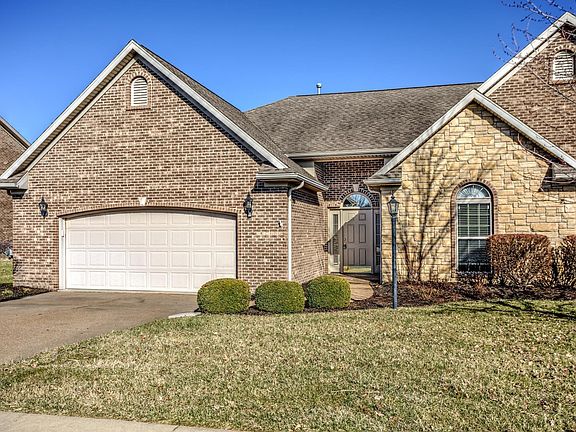 Discover your ideal home in this charming condo located in a prime Newburgh neighborhood! Mature landscaping and brick and stone exterior provides instant curb appeal on arrival. Stepping in the foyer, you'll note the fresh, neutral paint that continues throughout the residence. Adjacent to the foyer are the secondary bedroom and full bath. The bedroom features a vaulted ceiling, closet, and direct access to the large bathroom. Moving further, you'll find the office conveniently located off of the generous living room, offering a quiet workspace with French door for privacy and closet for storage. The kitchen offers plenty of cabinet and counter space as well as a pantry for storage and the cheerful eat-in dining space is filled with natural light from the multiple windows along the back of the home. The spacious primary suite offers a large bedroom, roomy bathroom with step-in shower and dual-sink vanity as well as large walk-in closet. Steps from the primary suite is the laundry room that features additional cabinetry for storage and folding counter. Rounding out the property is an over-sized 2.5 car garage and covered back patio overlooking lush greenspace.