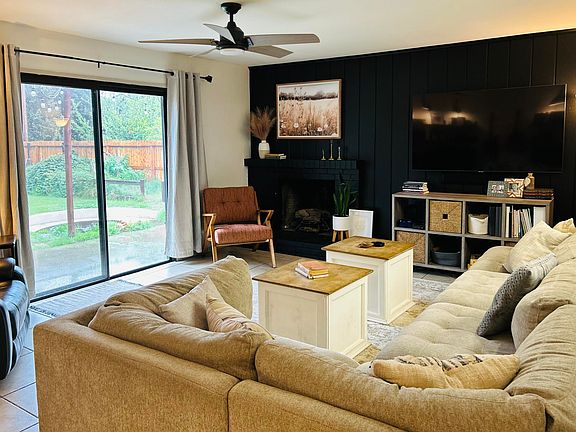 Cozy up by the fireplace in this charming three bedroom, two bath home. There is a pass-through window between the living room and kitchen that creates a more open, social layout. The kitchen offers painted cabinetry with newer hardware, newer oven/ microwave unit, newer dishwasher, and the center island is equipped with a built-in cooktop. All rooms are spacious in size, and the Master bedroom has its own sliding door. The spacious backyard features a sunken, circular fire pit for those chilly nights of entertaining with friends over some hot cocoa. There is also a chicken coop, play area, and two small storage sheds. All sides of the property have new fencing. New garage door opener was recently installed, along with the springs. A/C unit installed in 2019. The main water line and piping under the house was replaced in 2024.This home is settled in an established neighborhood of Southwest Visalia... COME TAKE A LOOK!