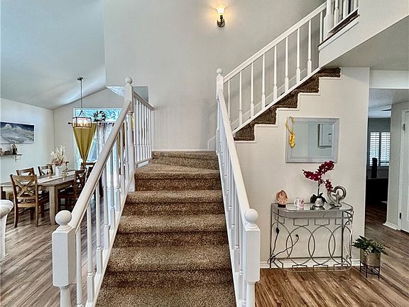 Step inside to discover a spacious, light-filled interior, featuring vaulted ceilings in the formal living room and dining area.