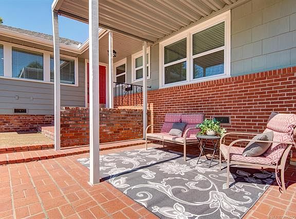 Beautifully remodeled midtown home perfect for entertaining! (See highlight video!) Washer, Dryer, Fridge (new in 2020) stay with the home!! New Roof in 2020! New doors from 1 1/2 car garage to home and garage to yard. Newer privacy fence and landscaping. New capacitor and refrigerant refill on AC unit in spring of 2022. Freshly painted ceilings. VERY LARGE Florida Room on the front of the home can be used as a game room, sitting room, coffee/breakfast area, library, office or a combination! In addition to the sunroom, there are 3 bedrooms, 1.5 baths, and an open concept kitchen/living/breakfast nook. The oversized kitchen island has storage and can fit 4 barstools. (There is also a pass through window into the sunroom.) The kitchen has newer stainless steel appliances (gas stove), newer cabinets and countertops, newer sink/faucet/fixtures, and more! The living room has large windows overlooking a very LARGE covered back patio/deck. The deck is right off of the living room, creating a beautiful extension of living space from indoors out...great for outdoor gatherings! Outside, you'll also find an outbuilding/garden shed, fire pit, grassy areas and cornhole area or extra covered area for storage. There is one large bedroom and two other average sized bedrooms, one with an updated half bath. The spacious hall bath has dual sinks, bathtub/shower combo and has also been updated. This home is close to conveniences & I-44. It is 8 minutes to the Gathering Place and less than 3 miles to Riverside Trails. Great location, great home! Let's make it yours!