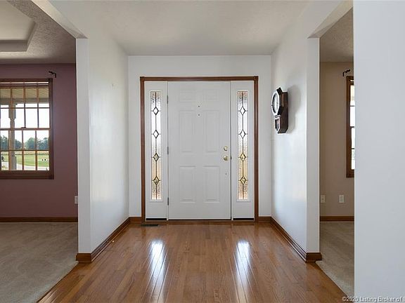 High Quality Custom built home is ready to you to make it your own. Covered front porch is peaceful and overlooks the country side. Foyer features hardwood and leads formal dining room there is a siting room/office area too. Kitchen is convenient and large with amazing hickory Schmidt cabinets. Nice breakfast nook/Eat-in area leads to private patio area. Laundry is large and has huge coat/storage closet outside entrance with covered porch and entrance to the garage. Master suite is private with a nice walk-in closet, bath with dual sinks, whirlpool tub and separate shower. Bedroom 2 & 3 are oversized and have double closet. Attached insulated GARAGE IS 45 x 25- plenty of room for 4 cars or work shop area. Basement has 2222 sq ft and is studded and and ready for additional bedrooms, family room or whatever your family needs. Basement has a concrete storm shelter, shop/work area toilet, sink and extra washer area for those shop towels. Heat pump, 2 water heaters, water softener, water pressurizer that boost water pressure. Sq ft & rm sz approx.
