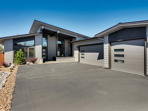 Gorgeous, modern, Earth Advantage Certified, Net-Zero solar energy home! Single level with three car garage, high ceilings, 4th bedroom/office and fabulous designer touches! You will love the light and bright feel as you enter from the covered front porch with built in bench seating. Great room design main living area open to kitchen and dining with sliding doors looking out to mountain views and the fenced, landscaped backyard with patio. Beautiful primary bedroom suite with doors to outside. Don't miss the home office (listed as 4th bedroom) and the wonderfully large mud/laundry room off of the garage! Two guest rooms plus a full bath on other side of home provide nice separation of living. Large kitchen pantry+ solid surface counters, custom cabinetry, tile work throughout and so much more! This part of the neighborhood is new but more established so no construction to worry about and backs up to dry irrigation canal so offers loads of privacy! Please check out the 3D walk through