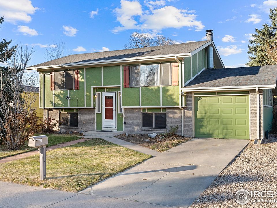 Welcome home to this beautifully updated property in the heart of Greeley! Step inside to find fresh modern updates throughout, including luxury vinyl plank flooring, new countertops, and gorgeous stainless steel appliances. Natural light fills every room, creating a bright & inviting atmosphere. The large corner lot offers exceptional outdoor space with brand-new turf, custom rock landscaping, mature trees, & a spacious storage shed. There's even RV parking for your toys or trailer! Enjoy cozy evenings by the freestanding wood-burning fireplace on the lower level, complete with a generous supply of firewood. With 3 bedrooms, 2 baths, and over 1,600 sq ft, this home offers plenty of storage and comfort. Centrally located within walking distance to grocery stores, coffee shops, & restaurants-this one checks all the boxes for convenience, style, & functionality.