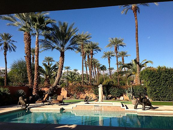 Directly across from Tamarisk Country Club this open floor plan features too many upgrades to mention in this space: Included are fully remodeled kitchen with new top of the line appliances/granite counter tops, polished travertine flooring. New lights and switches, free standing stacked stone entry wall, new toilets, sinks, shower fixtures, and A/C units including garage. Large storage room, wall mounted flat screen TV's in all rooms, wireless remote pool system, updated A/C, 6-coats of Venetian Plaster throughout, newly painted exterior, new carpets everywhere. Large outdoor kitchen under massive covered patio. 2-bedroom casita.Corner lot with an unobstructed 200 degree view of mountains. Artificial turf, remote fire pit, security cameras, home automation interior and exterior including remote patio awning and screens. Putting green. Large outdoor storage shed, 50+ solar panels and more, much more!