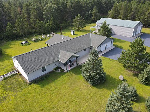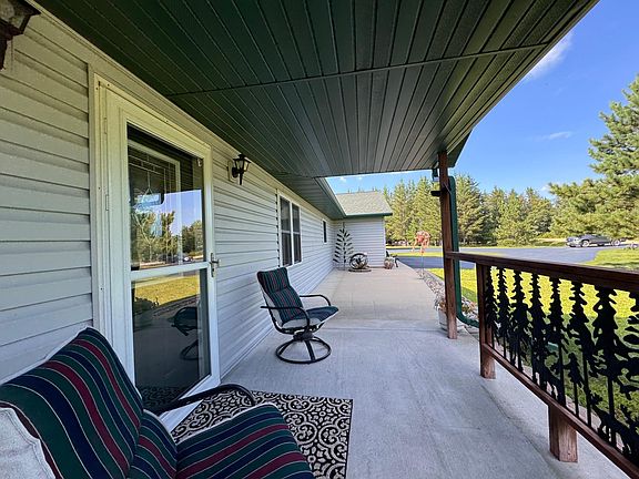 Very clean, newer built one level, 3 bedroom home on outskirts of Menahga. This home has a country living feel backed up to acres of woods to offer tons of privacy! Enjoy an open concept living design that also offers beautifully shaded porches on front and back of home. Freshly coated asphalt driveway, detached garage/shop with separate working area and 14" door to fit your RV. This home has in floor heat with a wood burning fireplace as supplemental heat. Enjoy 3 RV Electrical Hookups in the back yard. Huge fenced in garden ready for harvest!