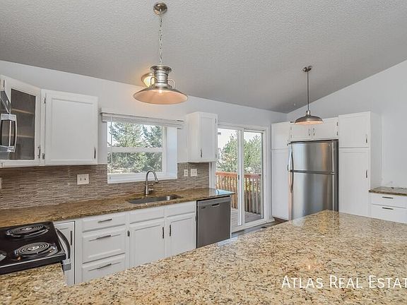 Beautiful home nestled in a quiet neighborhood with great views! As you step into the front door you are greeted with high ceilings and wonderful natural light. The main level is open to the upper dining room and open concept kitchen as well as the living space on the lower level. The dining room is adjacent to the kitchen making for a cozy spot to enjoy family meals. The kitchen boasts a lovely peninsula that offers additional seating for guests and entertaining. just outside on the deck is an incredible view and a delightful spot to grill and chat with friends. The master bedroom is down the hall and enjoys an attached bathroom. Two more bedrooms down the hall make for plenty of space. Downstairs, the living space has a cozy fireplace perfect for snuggling up with a book on a cold evening. The bar next to the living space is the perfect spot to enjoy your favorite libations with company as they visit to celebrate the holidays. There is also another bedroom on the lower level that has an attached bath and could easily be used as a guest suite. An attached two-car garage, as well as a large lot, make this a must-see home!