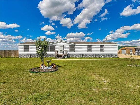 Country living, Bring your horse. Well maintained 4 bed, 2 bath mobile on 1.22 acres. Kitchen has beautiful light natural wood grain cabinets, granite countertops, tile backsplash, island with breakfast bar, pantry and informal dining area attached. Formal dining across from kitchen. Master en suite with corner garden tub, separate shower and dual sinks. Second living area has cozy wood burning fireplace and door to large wood deck with railing, great for family cook outs and entertaining. Utility room large enough for additional fridge. Mobile S No.129966001241 AB, L No. TRA0442527 28