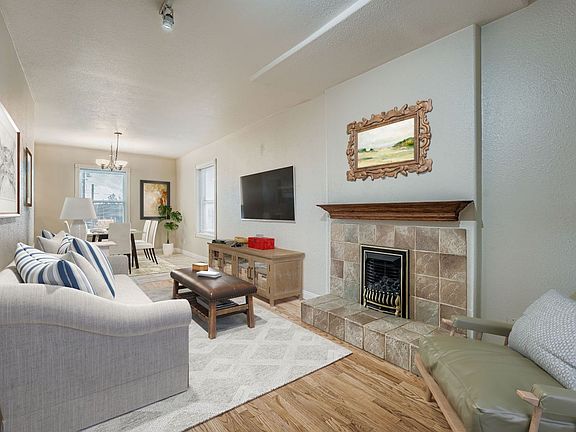 Inside, natural light fills the open living spaces, including a cozy living room with fireplace and a dining/kitchen area featuring stainless steel appliances and durable flooring. The lower level offers a versatile mother-in-law suite, perfect for guests, extended family, or a private home office. Central air conditioning, forced-air heating, and in-unit laundry provide year-round comfort and everyday ease.