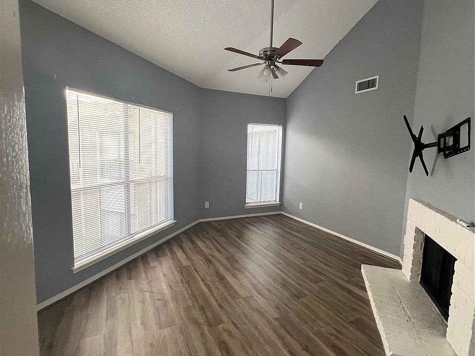 Excellent investment opportunity!! 1 bedroom and 1 bathroom condo located in a gated community. High quality granite countertop (2020), stainless steel appliances. ceiling fans (2020), toilet (2020), kitchen and bathroom faucets (2020). Brand laminate and tile flooring Brand new blinds, New 2 ton AC units replaced in 2024. Fireplace and two private balconies! Water, sewer, trash, assigned and covered parking included in HOA. HOA also covers all exterior maintenance. Pool with BBQ pits. Easy access to Beltway 8 and Westpark Tollway. NEVER FLOODED. Schedule your private showing today!
