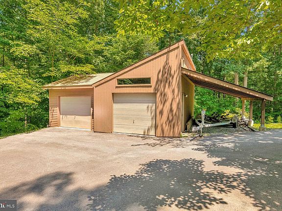 Embrace tranquility and elegance in the sought-after neighborhood of Emerald Cove! This custom contemporary A-frame home sits on 5 stunning acres, perfectly combining cleared space for entertaining with wooded areas to explore nature. Enjoy the Patuxent River with your own boat slip and 12,000lb lift at the community dock. Inside, the bright and open main level features a brand-new kitchen, engineered floors, a cozy fireplace, and sliding glass doors leading to a large deck. The primary suite is also on this level. Upstairs, you’ll find two spacious bedrooms and a full bath. The basement offers a family room with another fireplace which is ideal for movies or gatherings, a full bathroom, an additional bedroom, ample storage, and a walkout to a flagstone patio. A detached two-car tandem garage includes a separate workshop and an additional side that can serve as another garage or storage shed. The home also features a state-of-the-art geothermal HVAC system, providing energy efficiency and sustainability. Don't miss this opportunity to own a piece of paradise in Emerald Cove!