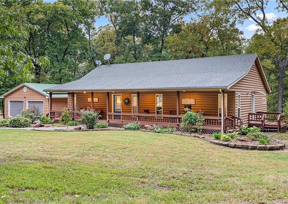 Welcome to this COMPLETELY RENOVATED 3,143 sq. ft. home that perfectly combines modern comfort with serene natural surroundings. Nestled off paved roads with a 0.10 mile winding concrete driveway, this property offers country living within a few miles of the city. Inside, you'll find an open floor plan with two spacious living areas, ideal for entertaining or enjoying quiet nights at home. The home has been completely updated in 2023, giving you fresh finishes, modern style, and move-in-ready convenience. The kitchen is a show-stopper featuring two islands, sleek granite counter tops, and custom cabinets offering incredible storage. This is the perfect mix for cooking, entertaining and everyday living! This home features 3 bedrooms, 3 bathrooms and an additional room for an office, craft or a 4th non-conforming bedroom. Step outside to multiple decks to take in beautiful views of the wildlife. The two car-garage, 30x40 insulated garage/outbuilding, pole barn, 12x26 four season awning and 20x30 Quonset awning provide amble storage and room for hobbies or workshop. Enjoy the view of nature and plenty of wildlife, complete with a beautiful creek and waterfall running through the property plus a zip line! Whether you're relaxing on the covered porches, hosting gatherings, or taking in the scenery, it's all where fun, peace and adventure meet right at your own home.