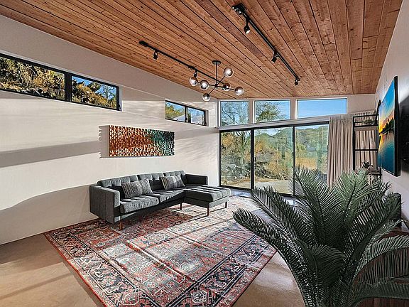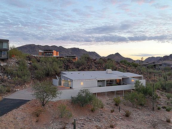 Modern Hillside Living designed by Architect Ned Sawyer. 1.4 acre desert hillside site offers AMAZING views! Vaulted ceilings, loft-style Master, open plan makes for dramatic interiors. Wood and concrete floors, fresh paint in and out: decorator lighting, updated baths. Split plan w/ oversized master bath, LARGE W/I closet. Adjacent work/study/office. Updated kitchen includes full suite of features. View patio w/built-in BBQ. Garage has a/c'd space for shop/storage. Outside you'll marvel at the standing-seam-metal roof, smooth plastered walls and original redwood decking with architectural cable-rail. Stunning views surround this home offering intimate mountain vistas and city lights, all from the super location close to the Phoneix Mountain Preserves. Paradise Valley Schools too! WOW! Updated Modern Hillside - Edward B. Sawyer Jr AIA NEW TO MARKET! This Hillside Home was designed by Architect Ned Sawyer AIA, recognized for his distinctive Modern designs. Positioned for maximum views along the top of this 1.4 acre desert hillside site, the home subtly commands the landscape, but never overwhelms the natural beauty of the location. Vaulted wood ceilings, loft-style Master Suite and open plan makes for dramatic interiors that include oak wood and finished concrete floors, Freshly painted gallery finished walls are highlighted by the decorator lighting. Split plan includes three bedrooms while the master bath includes a glorious shower and oversized tub with jets. The master closet is oversized and there is an adjacent work/study/office. The updated kitchen includes a full suite of features and appliances. There is a view patio with built-in BBQ. The 1.4+- acre lot gains privacy and is loaded with potential for additions, pool and more. The garage has extra air conditioned space for shop/storage; even a convenience toilet. Outside you'll marvel at the standing-seam-metal roof, smooth plastered walls and original redwood decking with architectural cable-rail barriers. Stunning views surround this home offering intimate mountain vistas and city lights, all from the super location close to the Phoneix Mountain Preserves. With new paint in and out, refinished floors and more, this home as been completely freshened and is ready to enjoy without any work. The location is superb with all that this popular location has to offer including convenient shopping, freeway access and wonderful Paradise Valley Schools too! Here is your rare opportunity to own an architectural home designed by a name that has contributed so much to our valley! Modern Hillside Living... Don't miss it! Outstanding Modern Design Custom Design by Notable Architect Unequalled Views! Acre + Desert Lot Near the Phoenix Mountain Preserves Fully Updated Home Wood and Concrete Floors Loft Style Interiors Vaulted Wood Ceilings Updated Master Bath with Oversized Shower/Jetted Tub Large Walk-in Closet Private Office/Study Standing Seam Metal Roof Fresh Paint in and Out 2-Car Garage with A/C'd Storage/Shop Finished Garage Floors