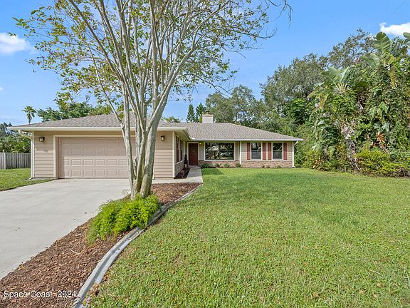 Nestled between the Indian and Banana Rivers, this updated home is located on a cul-de-sac in the highly desirable Rockwell Estates neighborhood of South Merritt Island. With a split floor plan and open-concept design, the home features wood-like tile flooring throughout and a charming standalone wood-burning fireplace. The updated kitchen and bathrooms, along with abundant natural light from three glass sliders, create a bright, airy feel. These sliders open to a sprawling screened-in lanai, perfect for outdoor living. The fully fenced yard offers privacy, a shed and space for a boat and toys. Brand new hurricane impact garage door. Enjoy peaceful living near the water, with easy access to highways, beaches, shopping, restaurants and top-rated schools. Don't miss your opportunity to own this beautiful home in one of Merritt Island's most coveted neighborhoods. NO HOA!