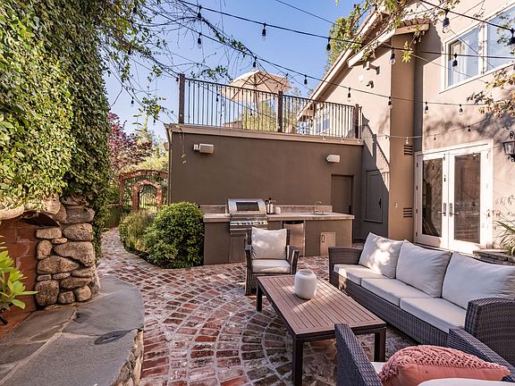 This private, gated, and beautiful retreat like home is one of a kind with a detached 2156 sq. ft. professionally built recording studio on the property. There are incredible views of the Santa Monica mountains and your own private access out back to plenty of hiking and riding trails. A resort like backyard with pool, waterfall, bbq station and 3 fireplaces. Resort. This unique one acre property is spread out nicely with steps leading down from the house to a full court basketball and paddle tennis court. Follow more steps down from there to find over 2000 sq. ft Professional recording studio with another full bathroom and pub like kitchen. If that is not enough there is also 2 identical 400 sqft apartments attached to the studio for your guests to stay, with thrown private entrance. For the non musicians the space could also be used for a business, guests or extra living quarters. All furniture and studio equipment available to purchase with property.