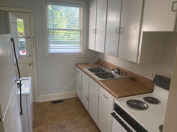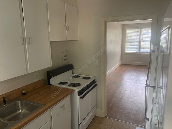 Two bedrooms, two bathrooms, living room. Kitchen includes refrigerator and stove. Stack washer and dryer connections. Central heat and air. Hardwood, tile and vinyl floors. Pet restrictions. Off-street parking. Water included.