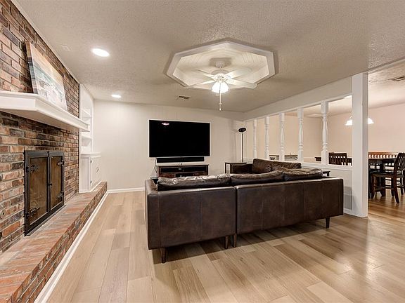 Welcome to this spacious and versatile home in the heart of Bethany, located within the Putnam City School District, and walking distance of beautiful Lake Overholser. Offering over 2,160 (mol) square feet of well-planned living space, this 3-bedroom, 2-bathroom home is full of potential and ready for your personal touch. The main living room features a cozy brick fireplace framed by built-in bookcases and cabinets—ideal for showcasing your favorite decor, books, or keepsakes. Modern luxury vinyl plank flooring adds a fresh, updated look throughout the main living areas. Just off the kitchen is a large dining space, perfect for hosting family meals or holiday gatherings. Toward the back of the home, you’ll find a massive second living area with oversized windows that flood the space with natural light and offer a peaceful view of the backyard—an ideal spot for a game room, media lounge, or flexible living. The white kitchen provides plenty of cabinet storage and prep space, making it a great foundation to build out your dream kitchen. Two full bathrooms serve the home—one with a walk-in shower and the other with a traditional tub—offering comfort and convenience for daily routines. Notable upgrades include a recently replaced water heater tank, attic ladder, gutters, microwave, and a newly upgraded electrical panel with breakers, adding peace of mind for future improvements and efficiency. Out back, a spacious backyard awaits with a concrete patio— perfect for outdoor entertaining, relaxing evenings, or even future landscaping projects. This home is a blank canvas with great bones, multiple living areas, and key updates already in place. A fantastic opportunity to create a home tailored to your lifestyle in a well-established neighborhood. Welcome Home!