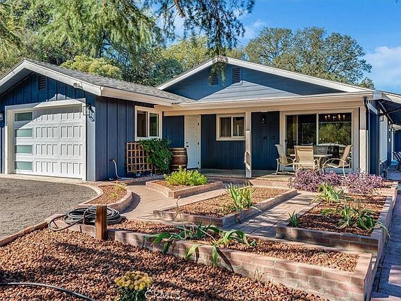Welcome to 3725 Plymouth Hill! Experience the best of both worlds with a location just outside of city limits- enjoy the spacious, peaceful feel of country living while being mere minutes to the Paso Robles Downtown City Park, wineries, and restaurants! The two-acre parcel is accessed via a custom iron gate and private driveway, offers an abundance of privacy, and is studded with mature oak trees. This Mid-Century Modern home has been completely remodeled to the highest of standards; the interior was stripped down to the studs and meticulously restored while maintaining original charm. The open floor plan consists of three bedrooms and three baths, with two of the bedrooms being en suite. The spacious kitchen offers ample storage, including a walk-in pantry, granite countertops, and color-changing LED under cabinet and toe kick lighting. The stunning primary bath features double sink vanities, quartz counters, and a gorgeous tiled shower that doubles as a steam sauna. Revel in the seemingly endless views of rolling hills and vineyards through the panoramic living room windows or from the hot tub outside. The massive patio provides a generous space for relaxing or entertaining. An attached, single car garage is in addition to a detached, two car garage (both fully finished and insulated) that could also be utilized as a workshop. New roof on the home was installed in 2021. Please take the time to view the photographs to fully appreciate how wonderful this property truly is. Call your agent today to schedule a tour of this incredible property!