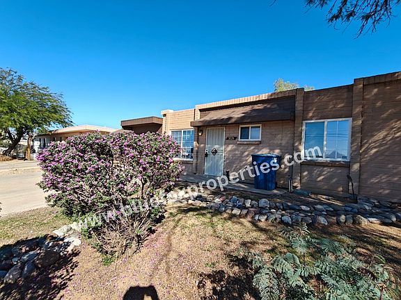 2 bedroom, 1 bath home located in a convenient east-side neighborhood. This home features tile and *new* carpeted flooring, a private yard with a covered patio, and shade trees. The kitchen will be easy to cook in with the bright windows, plenty of counter and cabinet space. Refrigerator, stove, microwave and dishwasher are included. There are washer and dryer hookups included. Single garage and additional storage shed. Located close to shopping, walking/biking trails, parks, and Davis Monthan Air Force Base!
