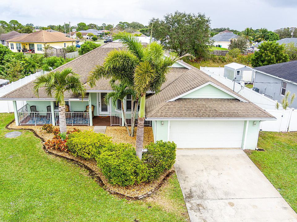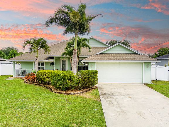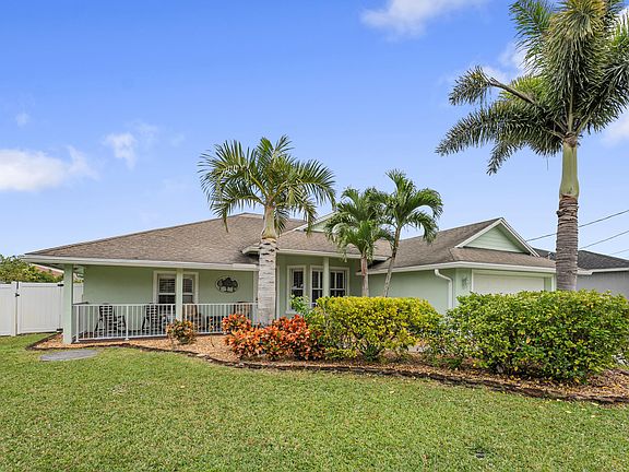Charming Key West-Style Home with Stunning Front Porch! NO HOAFeatures You'll Love:4 Bedrooms, 2 Baths - Includes a convenient cabana bathCanal-Front Backyard - Room for a pool & no rear neighbors!Primary Suite - Whirlpool tub, huge walk-in shower, & 2 large closets, large bedroomScreened Lanai - Perfect for relaxing & entertainingLarge attic spaceFront Porch Charm - Ideal for morning coffee or sunset viewsIndoor Laundry Room Tile Throughout Plantation Shutters Tropical Landscaping - Mango & coconut tree'sSprinkler System - Easy maintenance for the lush yardMinutes from Tradition - Shopping, dining, & entertainmentUnbeatable Value! The most affordable home in this desirable