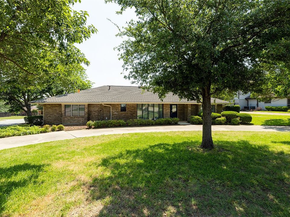 RARE FIND - SINGLE story, approx 3218 sq ft per TAD, 4 bdrm, 3 bath, 3 garage plus extra parking. Gunite DIVING POOL & SPA. Split bdrm floorplan, all rooms LARGE! Attic with RADIANT BARRIER, large part is floored for extra storage. Class 4 roof in 2013. Kitchen with granite counters & updated tile backsplash, glass cooktop, LOTS of counterspace and cabinets. 2nd utility room has 2 full walls of California-Closet-type storage. Den with 2 huge skylights and full wall of bookcases, UNIQUE curved wall rock fireplace with gas starter. So many EXCELLENT features about this home and GREAT location too in prestigious Woodbriar Estates. Just needs some updates to make it your own. Diamond in the rough and priced accordingly. Voluntary HOA. May be eligble for GV-CV ISD. Come see today - this one will NOT last! All measurements are approx and all info deemed correct but should be verified by buyer. Seller does not have survey-buyer to pay cost if desired or required by their lender