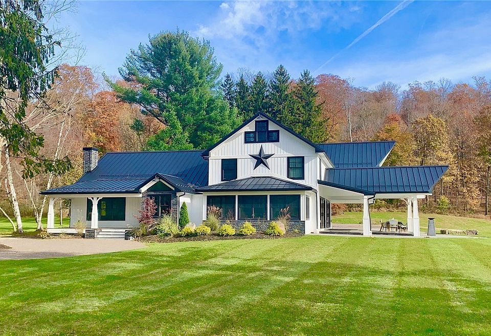 This Gorgeous, 5-6 Bedroom, Modern Farmhouse on 8 acres in Willoughby Hills is the perfect property for those searching for a Totally Private and Self-Sustaining property (includes private gas well & spring water). Pleasant Valley Natural Springs...is a truly Stunning, One-Of-A-Kind Hidden Gem that is tucked away and abutting Cleveland's Metro Parks! This property was once the home and original site of some of Chagrin River Valley's earliest settlers, The Covert Family. Today Completely Renovated, the property shares little resemblance to the original homestead…it now features the very popular modern farm house style exterior architecture with a wide-open 1st floor interior layout that includes high ceilings, rustic finishes and large entertaining spaces with tons of natural light. Main Level Features: Great front Sitting Porch, large Entry area, spacious Great Room with soaring ceilings and stone fireplace, a Grand Staircase, and an expansive Eat-In Kitchen with double islands, high-end appliances, walk-in pantry that is located right next to an equally large Dining & Lounging-Hangout area… all with tremendous views of the spring fed lake and access to the outdoor covered back patio. The Main Level also includes a 1st floor guest room & full bath plus laundry. Second Level Features: 5 Bedrooms including an Awesome Private M-Suite with fireplace, large screen TV, Glam-Bath, double sliders onto a large private balcony overlooking the lake while enjoying beautiful sunsets. Third Level Features: A Cozy Play-Loft. Property Features: Private Drive, 8 Beautiful Acres, Spring Fed Lake, Private Gas Well, Trails and direct access to C-Metro-Parks with ridge views of and access to the Chagrin River. This property would also would be perfect as a Horse Property or Hobby Farm.