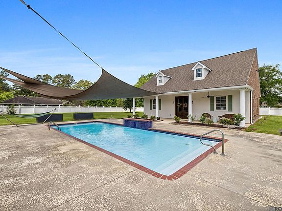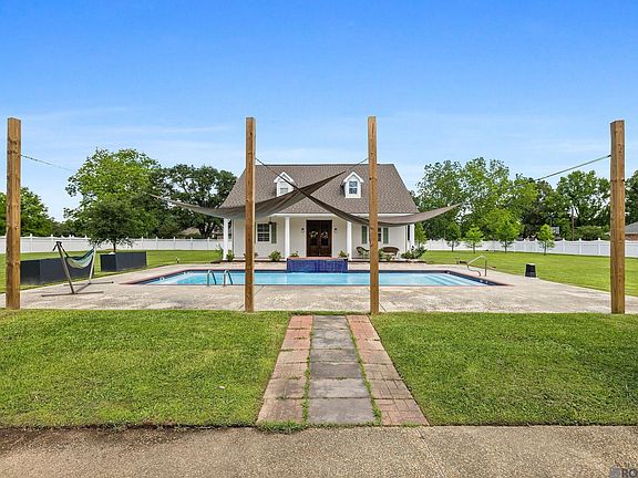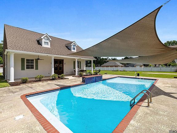 ACADIAN-STYLE HOME ON 1.4 ACRES WITH GUEST HOUSE, POOL & MORE! This beautifully maintained Acadian-style home sits on a spacious 1.4 acre lot and features a new roof as of May 2023, a 15x40' inground pool, and a 1,350 sq. st. guest house with endless possibilities. The main house showcases an open floor plan with abundant natural light, a cozy brick fireplace, and wood flooring throughout the living room, bedrooms and the second floor game room. The kitchen is a chef's dream with a large island topped with slab granite countertops, stainless undercount sink, and a premium stainless steel appliance package including a gas cooktop. Upstairs, enjoy a beautifully finished space featuring an entertainment area, bedroom and full bathroom. The guest house offers 1,350 sq. ft. of flexible space- which includes a full kitchen, bathroom and a large open-concept area. Behind the guest house is a large cement pad that provides extra storage or room for covered work area. Additional features include, Boat/RV parking, fully fenced backyard, double garage with ample storage, professionally landscaped grounds. This property perfectly blends function, style and flexibility! A definite must see!!