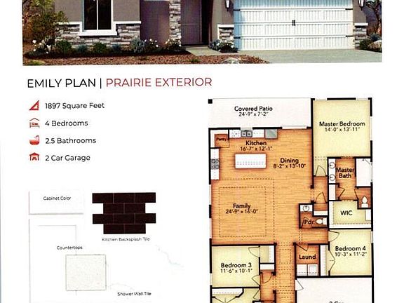 Are you looking for a 4 bedroom brand new home? This home is the 1897 square foot Emily floor plan featuring wide open space between the living room, dining room and a kitchen with a large island. You will have a master suite and an additional 3 bedrooms with 2 1/2 bathrooms along with a laundry room.