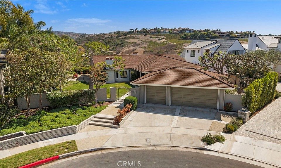 Discover the best of coastal living in the highly desirable Harbor View Hills South community. This sought-after single level floor plan features 4 bedrooms, approximately 2,400 square feet of living space, a 3 car garage, and an expansive outdoor setting designed for privacy and relaxation. Tucked away on a quiet cul-de-sac, the home welcomes you with a secluded entry courtyard offering endless possibilities for gathering or quiet reflection. Inside, vaulted ceilings and abundant natural light create a warm and inviting atmosphere that flows effortlessly between the living, dining, and kitchen areas. The kitchen is ideally positioned between the living and family rooms, making it the heart of the home. The spacious primary suite offers a private retreat, while the secondary bedrooms are generously sized and thoughtfully placed for comfort and versatility. Outdoors, enjoy a private sanctuary perfect for al fresco dining, entertaining, or simply soaking in the serene coastal ambiance. Located just minutes from pristine local beaches, top-ranked schools, and world-class shopping and dining at Fashion Island, this Harbor View Hills South residence offers the perfect balance of comfort, convenience, and coastal charm.