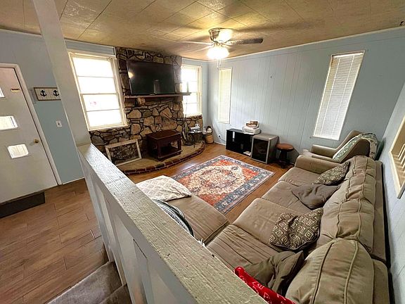 There’s a cozy den with a fireplace, and a wood stove insert is included (just not installed). One of the bathrooms is handicap accessible with a roll-in shower.