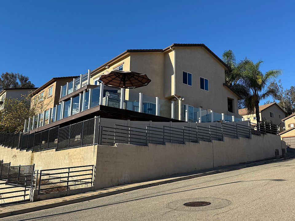 2 story outdoor deck with fire pit and gas grill. Outdoor Sonos speaker system