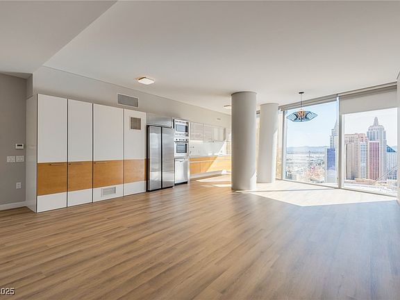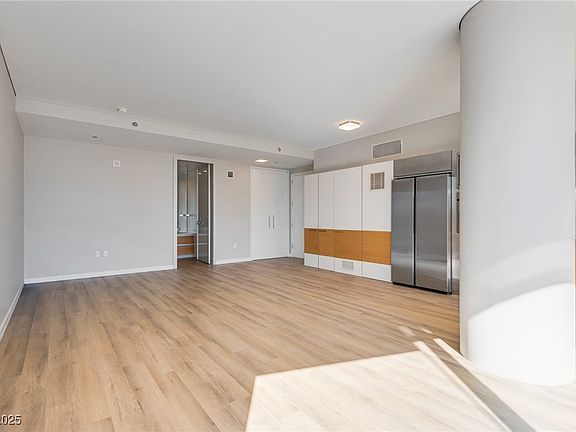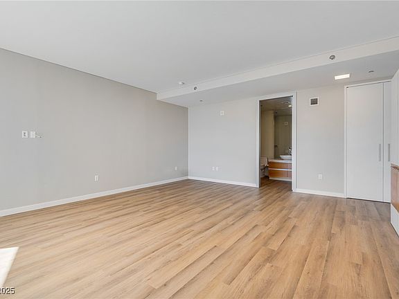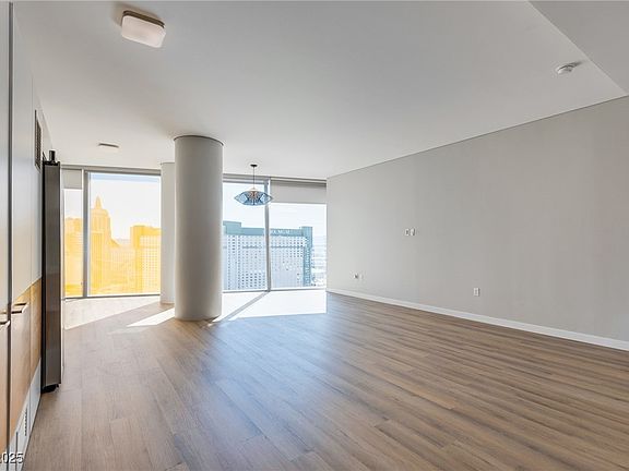 Experience luxury living in the 2nd largest studio that Veer Towers has to offer! Brand new upgraded flooring has been installed with a new Samsung refrigerator. You will have south strip views of New York New York and the upcoming Las Vegas Athletics baseball stadium. The suite features floor-to-ceiling windows that provide sweeping, unobstructed views of the world-renowned Las Vegas Strip. The open-concept layout provides a seamless flow between living, sleeping, and dining areas, making it an ideal choice for those seeking a spacious and luxurious retreat in the heart of the city. Veer Towers presents an unparalleled array of amenities including 24-hour valet, concierge services, the highest rooftop pool and spa in Las Vegas overlooking the cityscape, and fully-equipped gym.