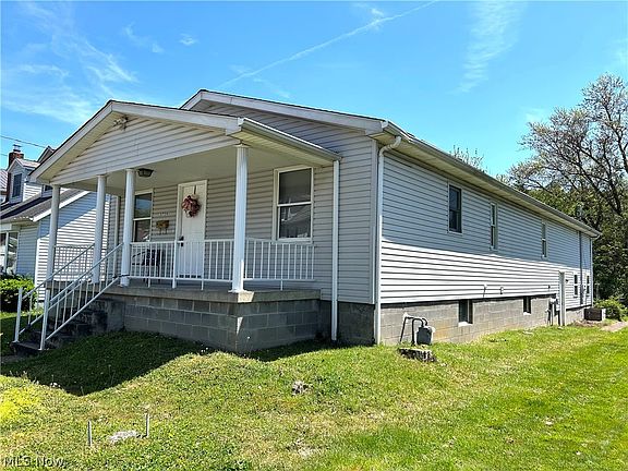 New in Shadyside! Come and see this spacious 3 bedroom, 2 full bath Ranch home with a welcoming covered front porch to sit and relax, read and enjoy a cup of coffee with family and friends. Well lit spacious living room, large eat in kitchen with appliances and pantry. Primary suite, 2 additional bedrooms and hall full bath. First floor laundry room with storage cabinets, side sink and washer. Lower level is unfinished, room for loads of storage, work out area. Oversized 2 car garage and a large driveway in rear of the home off the alley. Home Warranty!