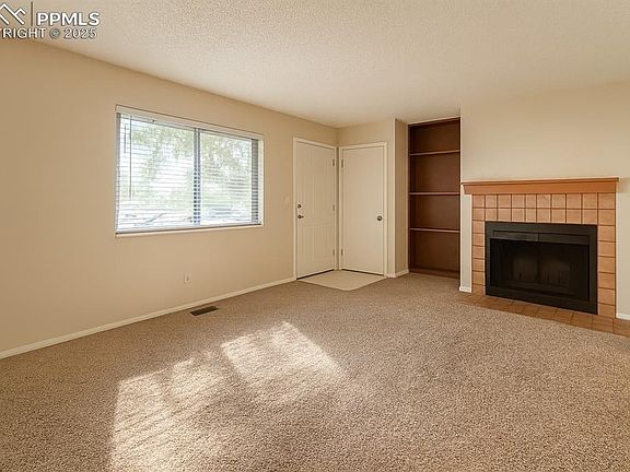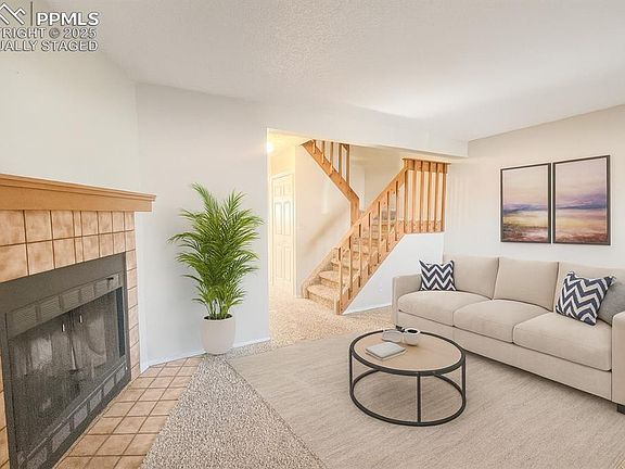 Charming 2 bedroom townhouse available in the heart of Colorado Springs! Well aquainted living room with wood burning fireplace and complimentary built in shelving. Eat in kitchen features new stainless steel oven/dishwasher/vent hood, freshly painted white cabinetry, and complimentary laminate flooring! Half bath and laundry hookups on main level. Dining area walks out to freshly painted 2nd story deck with access to storage closet and covered carport area under deck. Upper level features two large bedrooms and updated full bathroom! Located close to parks, schools, hiking/biking trails, and easy access to both Academy and Powers Corridor!