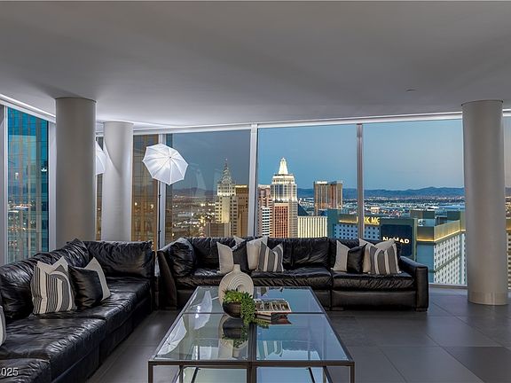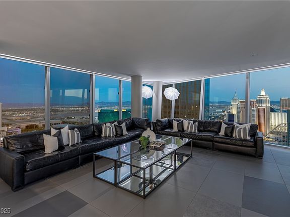 Live the pinnacle of high rise life in this Las Vegas Strip high-floor condo with sweeping 180-degree views. This ground up re-design has the best of everything. A floor-to-ceiling glass bedroom with privacy glass, huge 2’x4’ stone tile flooring that climbs the bathroom walls, Sub Zero and Miele appliances and voice controlled everything are some of the features in this 2 bed 2.5 bath 1,845 sqft residence. Enjoy World Class Amenities; valet with electric car-charging, concierge and package service, rooftop swimming pools, hot tubs, steam rooms, saunas, recreation rooms, gourmet coffee, well-equipped gymnasiums, full activity schedule, and an MGM pass. Veer Towers is an architectural landmark designed by the world famous architect Helmut Jahn and sits within the City Center also home to the Waldorf, Aria, Cosmo, Vdara, and the very best of everything.