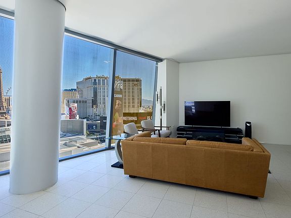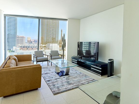 This fully furnished 1bd/1.5 ba is a contemporary residence in the renowned Veer Towers, located in the heart of CityCenter on the Las Vegas Strip. This beautifully designed home features sleek modern finishes, open living spaces, and expansive floor-to-ceiling windows that frame dynamic views of the city and surrounding lights. The kitchen is outfitted with high-end appliances and custom cabinetry, seamlessly flowing into the living and dining areas for an elevated urban lifestyle. Residents of Veer Towers enjoy exclusive amenities, including a rooftop infinity-edge pool, fitness center with panoramic views, resident lounge, and valet service, all within a striking architectural landmark steps away from premier dining, luxury shopping, and entertainment. This residence embodies the perfect blend of sophistication, convenience, and vibrant city living.