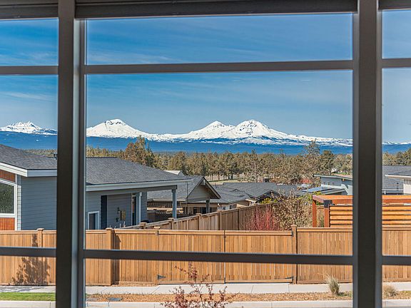 Revel in the breathtaking Cascade Mountain Range from the living room, kitchen, dining area, primary suite, and even the 4th bedroom/office. The kitchen showcases a large island with quartzite countertops, under-cabinet lighting, Bosch stainless steel appliances, soft-close cabinets, and a generous pantry. Unwind by the dual-sided fireplace in the living room, framed by expansive windows showcasing the Cascade Mountain Range. Entertain effortlessly on the covered front porch, accessible from the dining area. Indulge in the luxurious primary bathroom featuring a soaker tub, tiled shower with bench, double vanity, heated tile floor and 2 large frosted windows for ample natural light and privacy. With 10 ft ceilings, 8 ft doors, and upscale finishes throughout, every detail exudes quality. The 1,117 sq ft 3-car garage offers ample space for all your Central Oregon gear, complete with a workshop and gym area. At the rear, discover gated RV parking and a hot tub pad for added convenience.