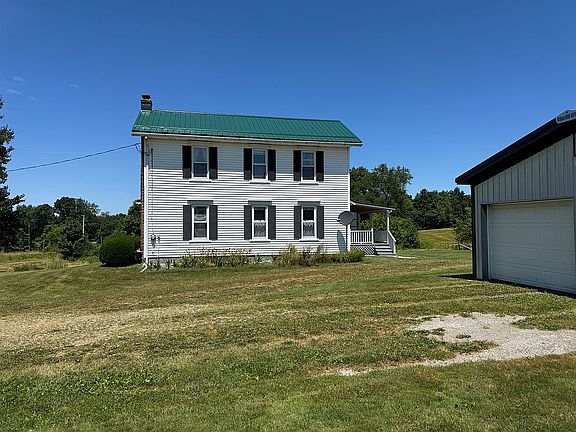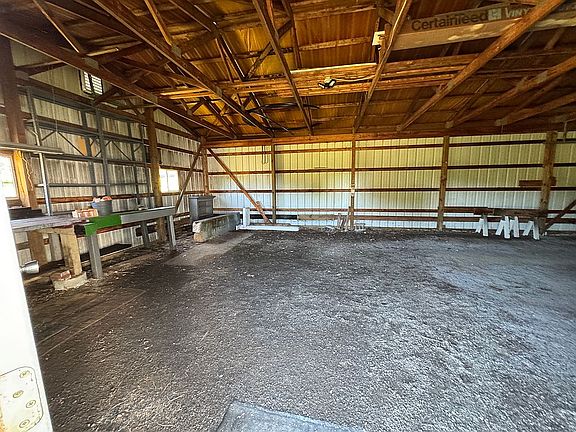 This is a 3-bedroom, 1-bathroom home with a dining room and laundry room. It has a shed, a 2-stall garage (1,000 sq ft.), a 2-stall pole building (1,300 sq ft.), and includes 10 acres of land. A new roof was put on in 2023. Property is sold as is.