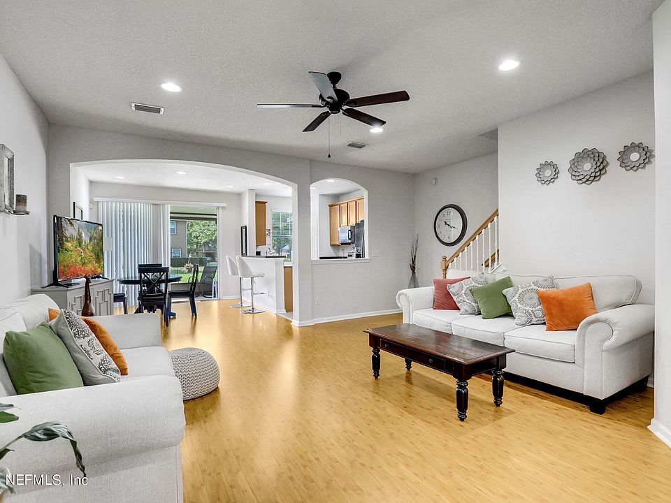 Discover this impeccably maintained 1-owner townhome nestled within a secure gated community. Boasting elegant laminate flooring throughout most of the home, this residence features a 1-year-old water heater and a modern AC system that is just 3 years old, along with a dishwasher and microwave for your convenience. Unwind on the inviting screened patio or take full advantage of the two state-of-the-art amenity centers, which offer incredible access to a waterpark, fitness center, as well as soccer, baseball, tennis, and basketball facilities. Both bathrooms are tastefully tiled on the floors and walls around the tubs and showers, while the owner's suite impresses with a spacious walk-in closet and a beautifully crafted tray ceiling. All appliances are included, making this home a true move-in ready gem. Come and experience a community that truly has it all! Oakleaf is ideally situated near shopping, convenient interstate access, and NAS Jax. Don't miss your chance to see this exceptional property!