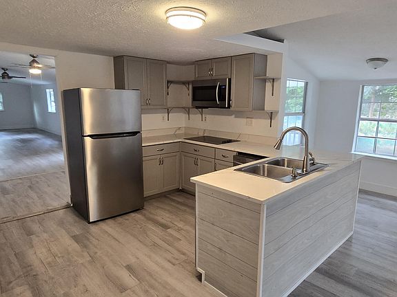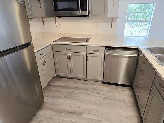 This well-maintained residence features three comfortable bedrooms and two full bathrooms with resilient premium vinyl flooring throughout. The kitchen comes equipped with stainless steel appliances, providing both functionality and contemporary appeal.