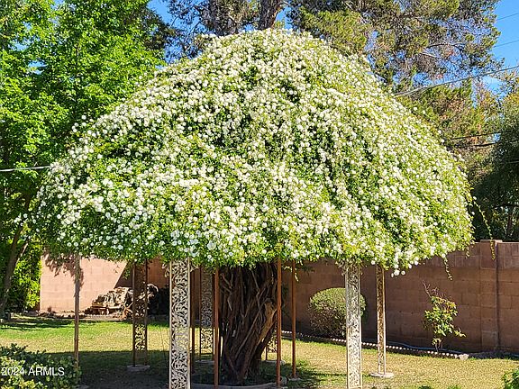 Step into this beautiful home rich in historic charm, where you'll be immersed in the perfect blend of old-world comfort + modern amenities. A nearly 1-acre estate nestled in the heart of Arcadia and Biltmore, you'll enjoy the high-end shops + restaurants, top-rated schools, hiking + biking trails, and friendly neighborhood vibe. Quiet inside and out, the spacious backyard is a perfect retreat for entertaining or relaxing. It features a diving pool, bath house, workshop, and Lady Banksia rose gazebo. Crafted by renowned builder Porter Womack as his personal residence, this custom-built home is a showcase of Arizona classic ranch architecture. Modern updates like the copper-finished metal roof provide the high-quality construction discerning homeowners won't find in today's homes.